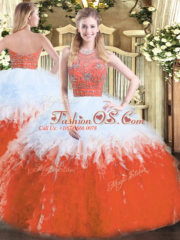 Home >  Quinceanera Dresses >  In Stock Quinceanera Dresses > Artistic Multi-color Halter Top Zipper Beading and Ruffles Sweet 16 Dress Sleeveless