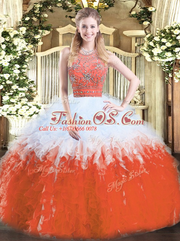 Artistic Multi-color Halter Top Zipper Beading and Ruffles Sweet 16 Dress Sleeveless