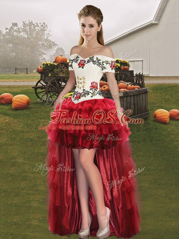 Home >  Quinceanera Dresses >  Quinceanera Dresses 2019 > Artistic Off The Shoulder Sleeveless Lace Up Quinceanera Gowns Wine Red Organza