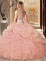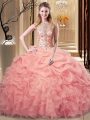 Artistic Organza Scoop Sleeveless Zipper Beading and Ruffles Quinceanera Gown in Peach