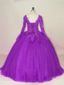 Artistic Purple Quinceanera Gown Sweet 16 and Quinceanera with Appliques V-neck Long Sleeves Lace Up