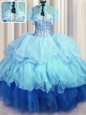 Artistic Purple Sleeveless Organza and Taffeta Lace Up Quinceanera Gowns for Military Ball and Sweet 16 and Quinceanera