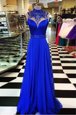 Artistic Royal Blue Chiffon Backless Prom Dresses Sleeveless Sweep Train Beading