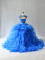 Artistic Royal Blue Sweet 16 Dress Scoop Sleeveless Brush Train Lace Up