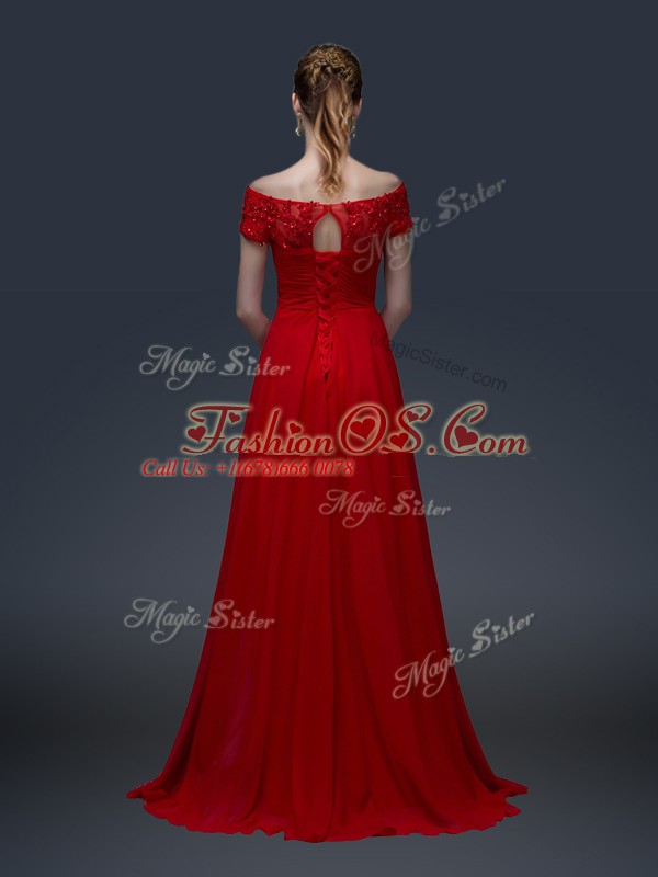 Artistic Short Sleeves Floor Length Appliques Lace Up Mother Of The Bride Dress with Rust Red