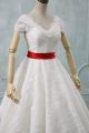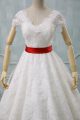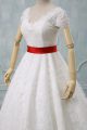 Home >  Wedding Dresses >  Wedding Dresses 2018 > Artistic Short Sleeves Tea Length Lace and Belt Zipper Wedding Dresses with White