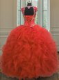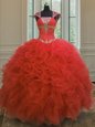 Home >  Quinceanera Dresses >  Puffy Quinceanera Dresses > Artistic Straps Floor Length Coral Red 15th Birthday Dress Organza Cap Sleeves Beading and Ruffles and Sequins