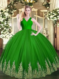 Artistic V-neck Sleeveless Zipper Quinceanera Gown Green Tulle