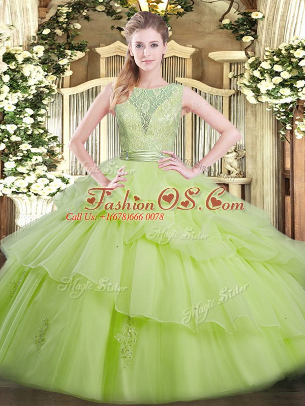 Artistic Yellow Green Quinceanera Gown Military Ball and Sweet 16 and Quinceanera with Beading and Ruffled Layers Scoop Sleeveless Backless