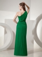 Aschaffenburg Germany Dark Green Prom Dress One Shoulder High Slit Empire Chiffon Beading