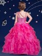 Asymmetric Sleeveless Flower Girl Dresses Floor Length Beading and Ruffles Hot Pink Organza