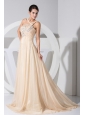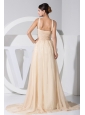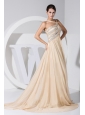 Asymmetrical Beading Decorate Bodice Champagne Chiffon Brush Train Prom Dress For 2013