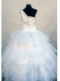 Asymmetrical Neckline Wonderful Beading Little Girl Pageant Dresses White Organza