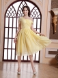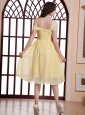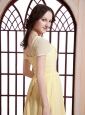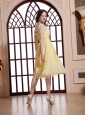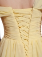 Get a celebrity look for less with this stunning off the shoulder light yellow ball gown dress. The twisted straps is the spotlight for this dress. The fitted, straps bodice made of chiffon ruches. If there is a kind of fabric that ever girl want to wear, then it must be chiffon. Light ,dreamful and comfortable chiffon is always the favorites of the designers to make dresses.