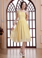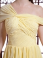 Home >  Special Occasion Dresses >  Homecoming Dresses > Asymmetrical Shoulder Light Yellow and Ruched Bodice For Prom Dress