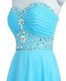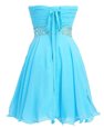 Home >  Prom Dresses >  Best Prom Dresses > Attractive Aqua Blue Organza Lace Up Evening Dress Sleeveless Mini Length Beading and Belt
