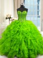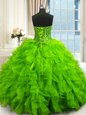 Attractive Beading and Ruffles and Sequins Quinceanera Gowns Lace Up Sleeveless Floor Length