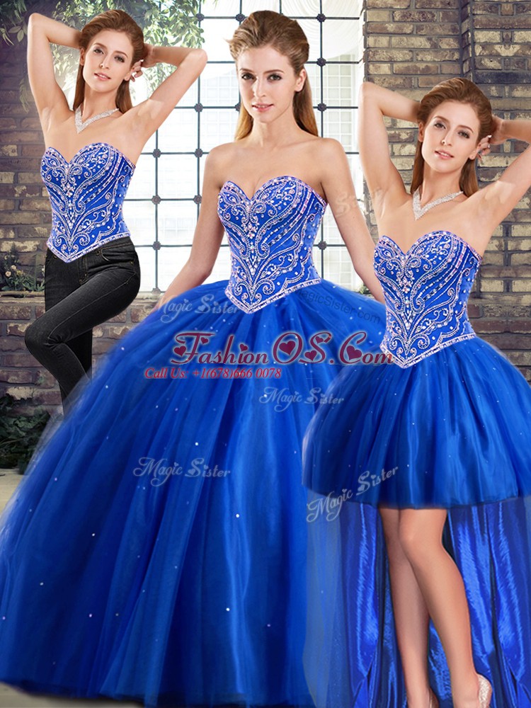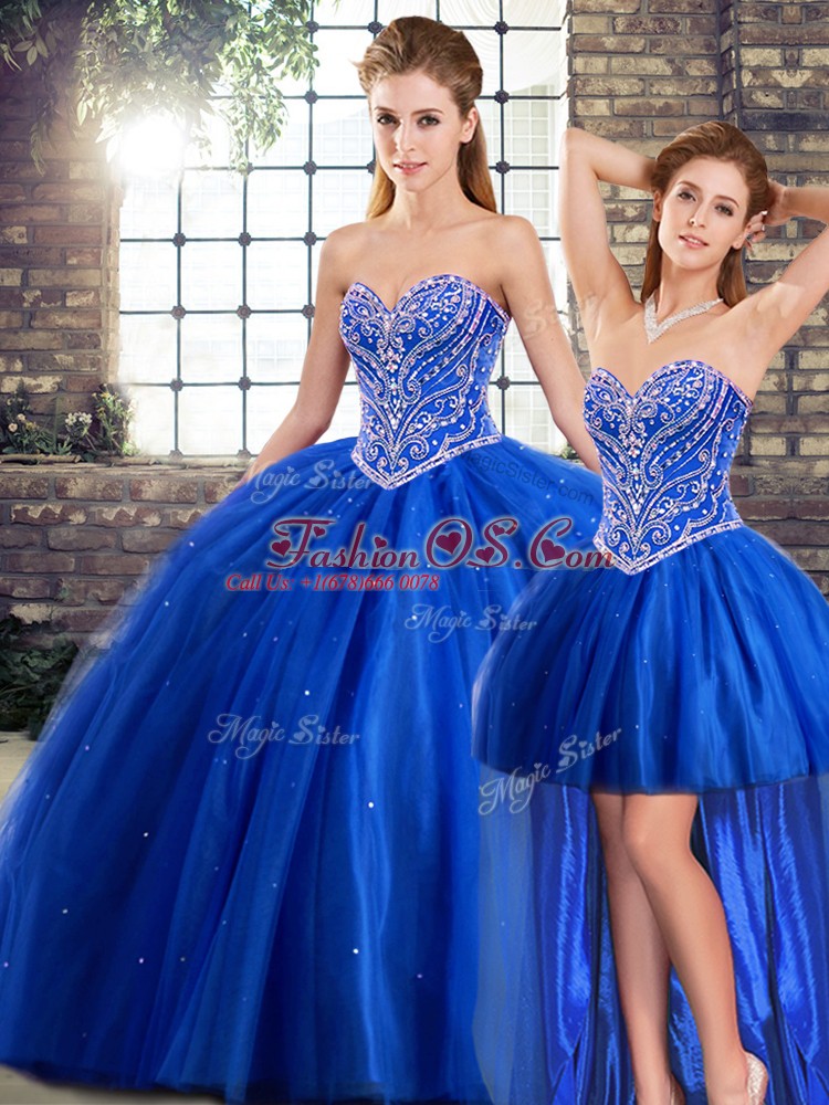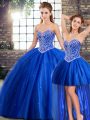 Attractive Blue Lace Up Sweetheart Beading Quinceanera Gowns Tulle Sleeveless Brush Train