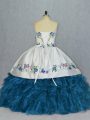 Attractive Blue Sleeveless Embroidery and Ruffles Lace Up Sweet 16 Quinceanera Dress