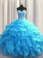 Home >  Quinceanera Dresses >  Unique Quinceanera Dresses > Attractive Brush Train Taffeta Sleeveless Quinceanera Gown Sweep Train and Beading and Pick Ups
