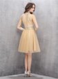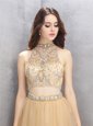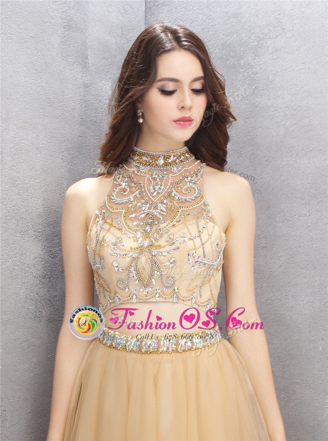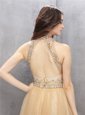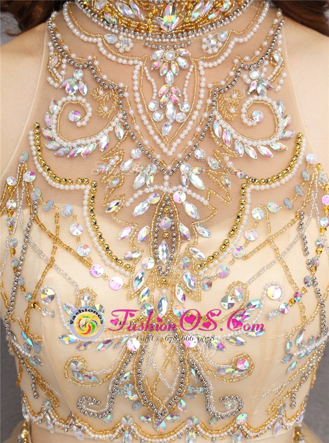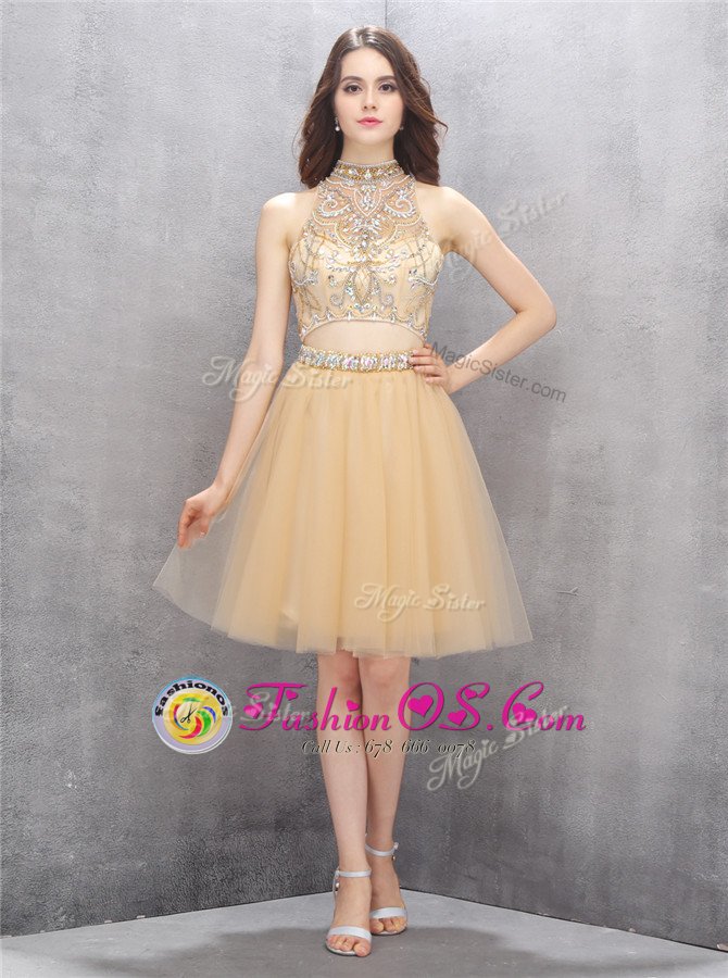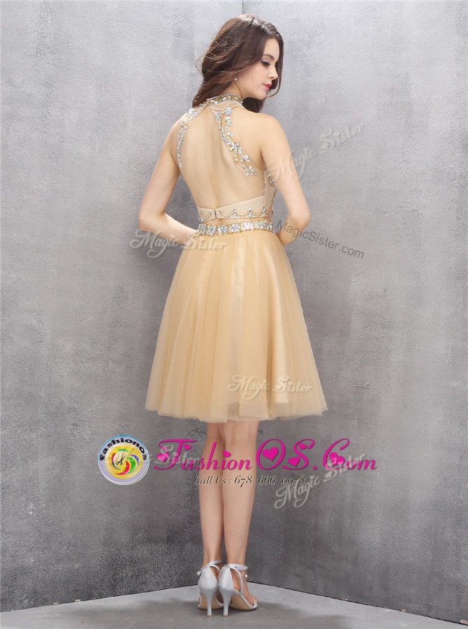 Attractive Champagne Tulle Zipper High-neck Sleeveless Knee Length Cocktail Dresses Beading
