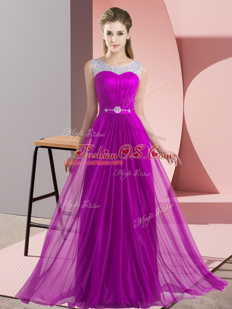 Attractive Floor Length Lace Up Bridesmaids Dress Purple for Wedding Party with Beading