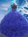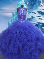 Attractive Floor Length Lace Up Sweet 16 Dresses Blue for Military Ball and Sweet 16 and Quinceanera with Beading and Ruffles