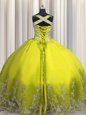 Attractive Floor Length Yellow Green Quinceanera Gown Straps Sleeveless Lace Up