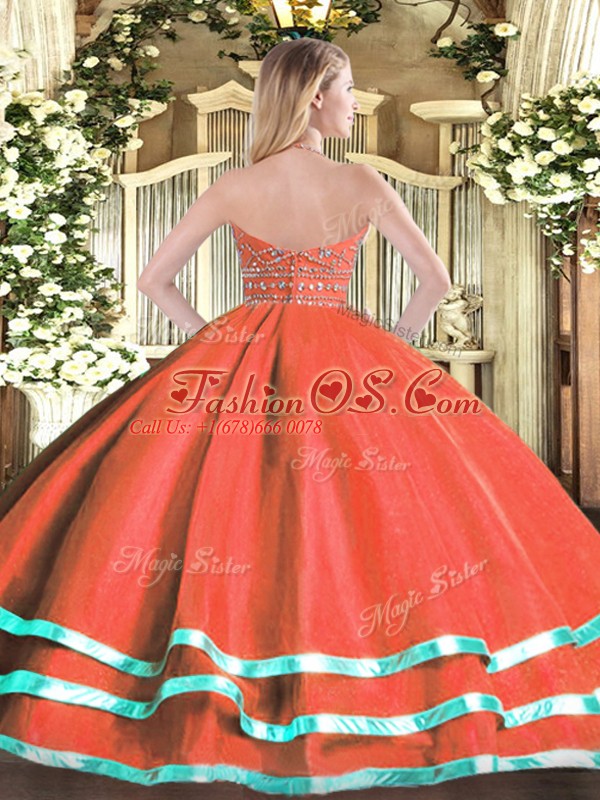 Attractive Fuchsia Tulle Zipper Sweet 16 Dresses Sleeveless Floor Length Beading