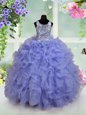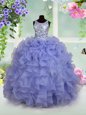 Attractive Gold Spaghetti Straps Neckline Beading and Ruffles and Pick Ups Child Pageant Dress Sleeveless Lace Up
