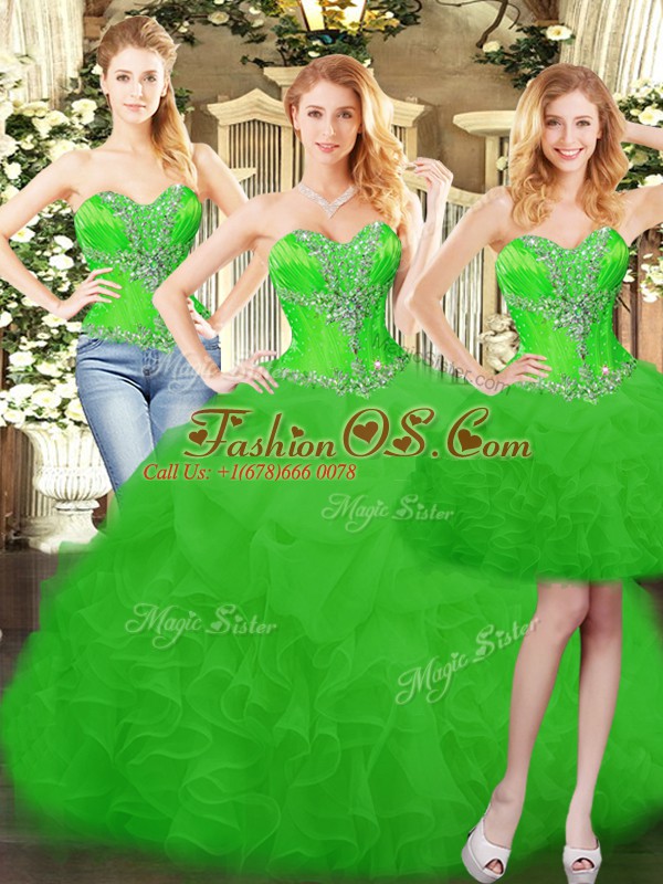 Home >  Quinceanera Dresses >  Detachable Quinceanera Skirts > Attractive Green Sleeveless Floor Length Ruffles and Bowknot Lace Up Quinceanera Gowns