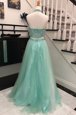 Attractive Halter Top Sleeveless Tulle With Train Sweep Train Backless Evening Gowns in Apple Green for with Beading