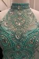 Home >  Evening Dresses > Attractive Halter Top Sleeveless Tulle With Train Sweep Train Backless Evening Gowns in Apple Green for with Beading