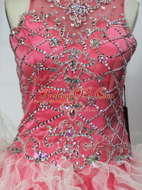 Attractive Multi-color Scoop Zipper Beading and Ruffles Ball Gown Prom Dress Sleeveless