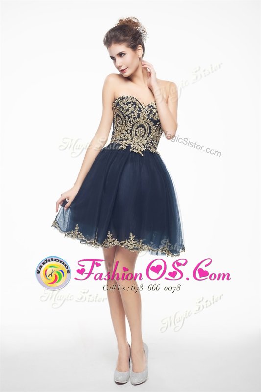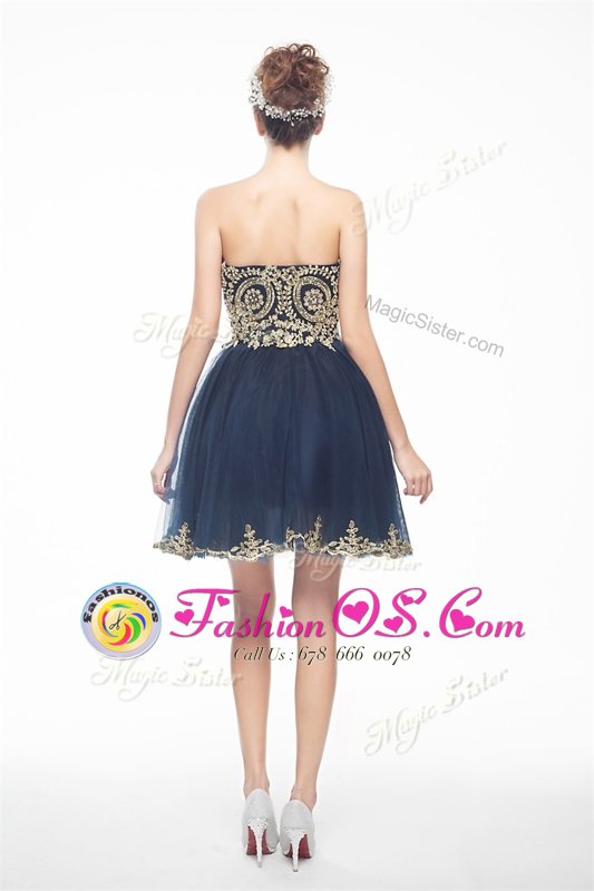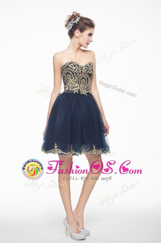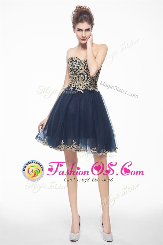 Attractive Navy Blue Sleeveless Organza Side Zipper Evening Dress for Prom