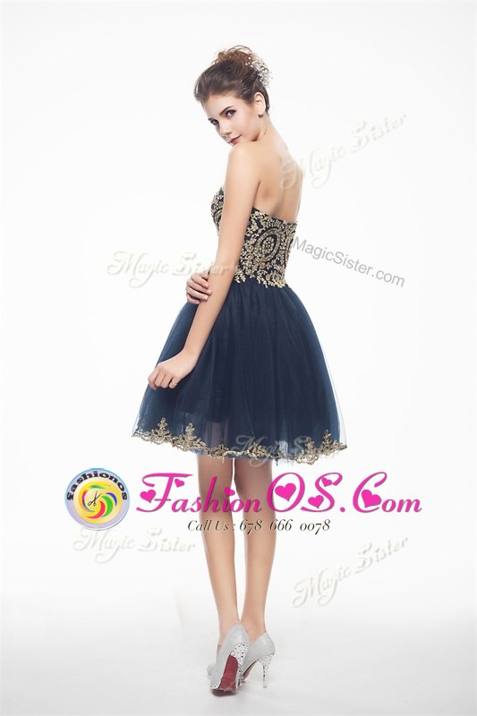 Home >  Prom Dresses >  Perfect Prom Dresses > Attractive Navy Blue Sleeveless Organza Side Zipper Evening Dress for Prom