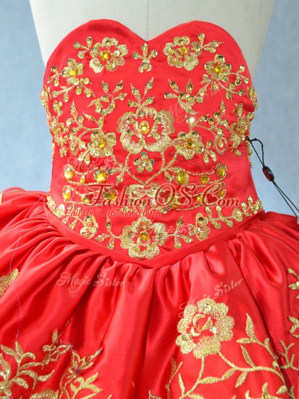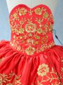 Attractive Red Ball Gowns Satin Sweetheart Sleeveless Embroidery and Ruffled Layers Floor Length Lace Up Little Girl Pageant Gowns