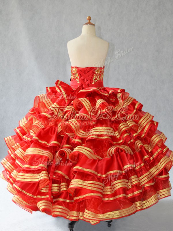 Home >  Special Occasion Dresses >  2018 Little Girl Pageant Dresses > Attractive Red Ball Gowns Satin Sweetheart Sleeveless Embroidery and Ruffled Layers Floor Length Lace Up Little Girl Pageant Gowns