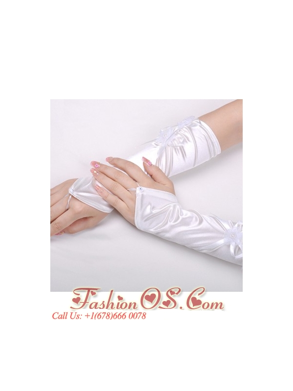 Home >  Accessories >  Gloves > Attractive Satin Fingerless Elbow Length Bridal Gloves With Hand Made Flower