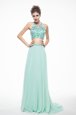 Attractive Scoop Apple Green Chiffon Criss Cross Homecoming Dress Sleeveless With Brush Train Beading