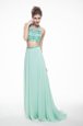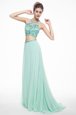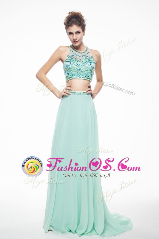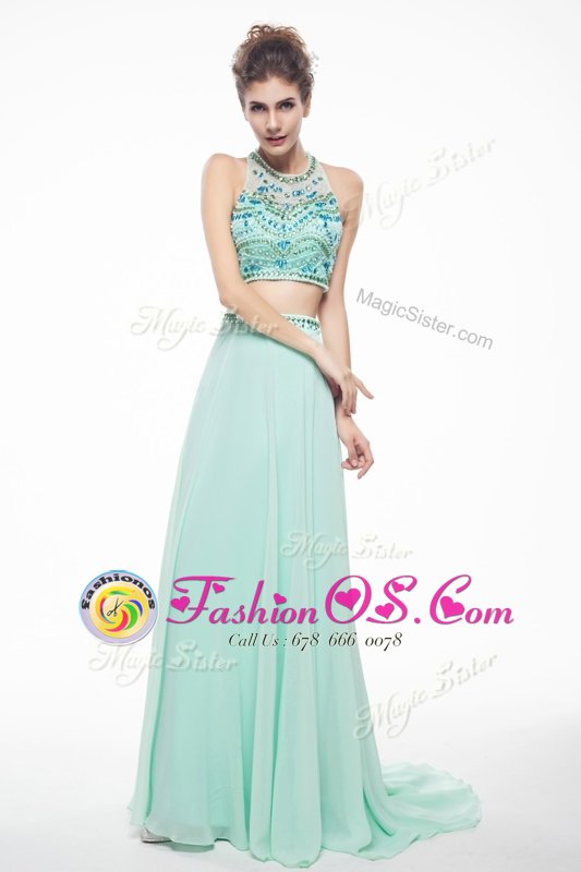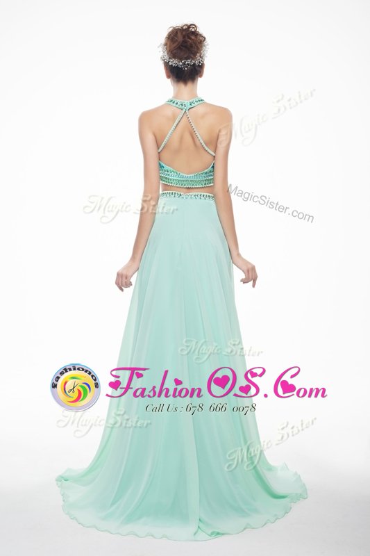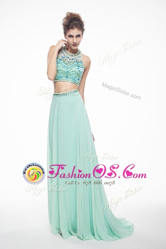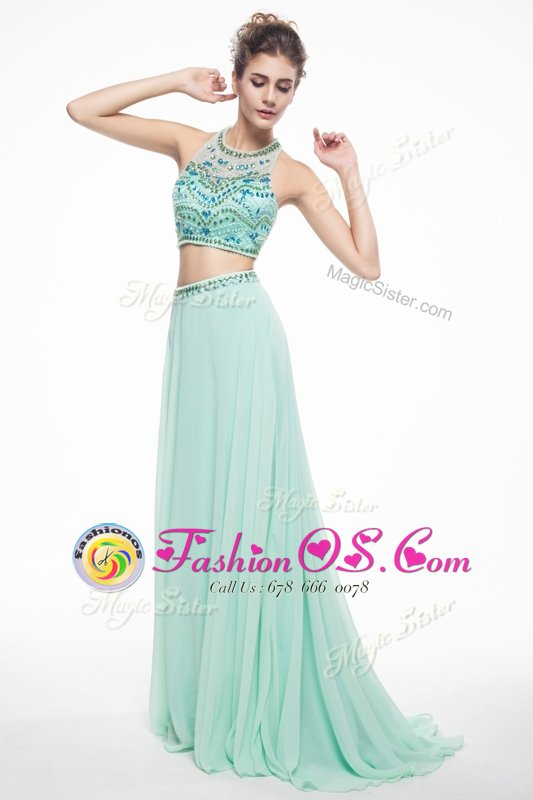 Home >  Special Occasion Dresses >  Homecoming Dresses > Attractive Scoop Apple Green Chiffon Criss Cross Homecoming Dress Sleeveless With Brush Train Beading