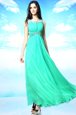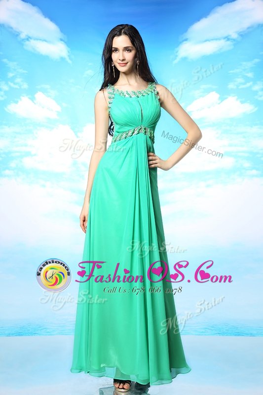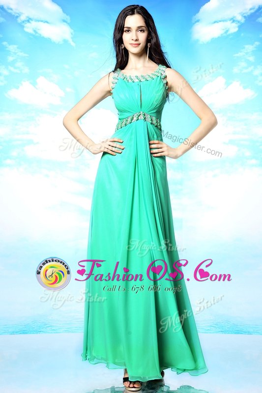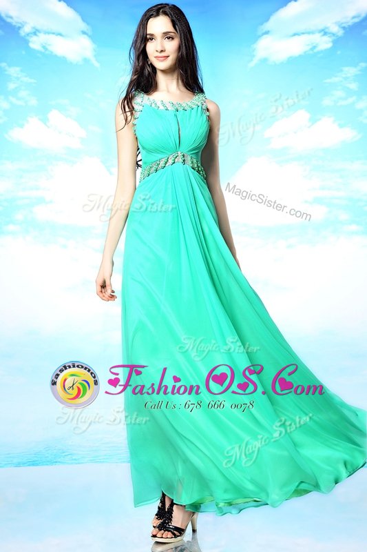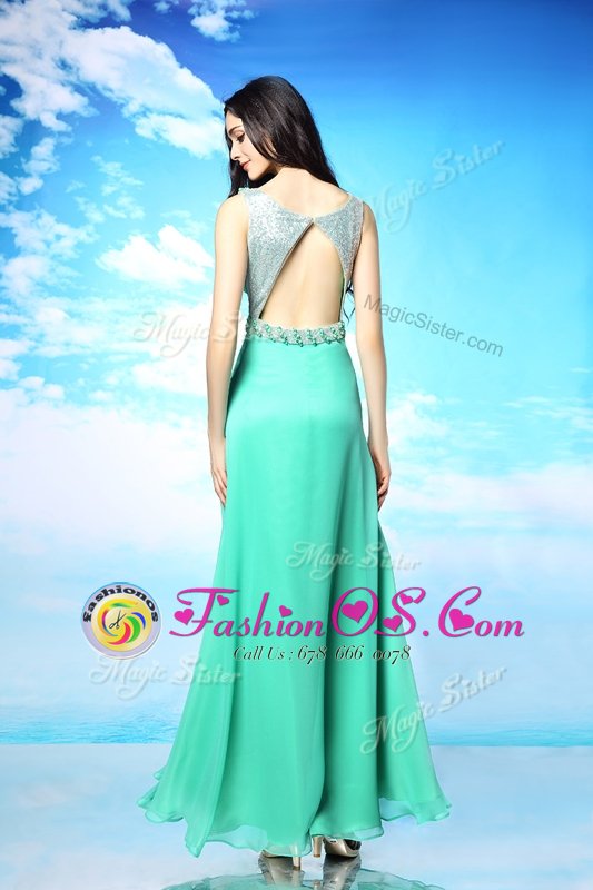 Attractive Scoop Floor Length Backless Evening Dress Turquoise and In for Prom and Party with Beading