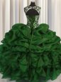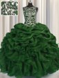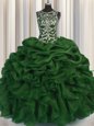 Home >  Quinceanera Dresses >  Pretty Quinceanera Dresses > Attractive See Through Dark Green Ball Gowns Scoop Sleeveless Organza Floor Length Lace Up Beading and Pick Ups Quinceanera Dress