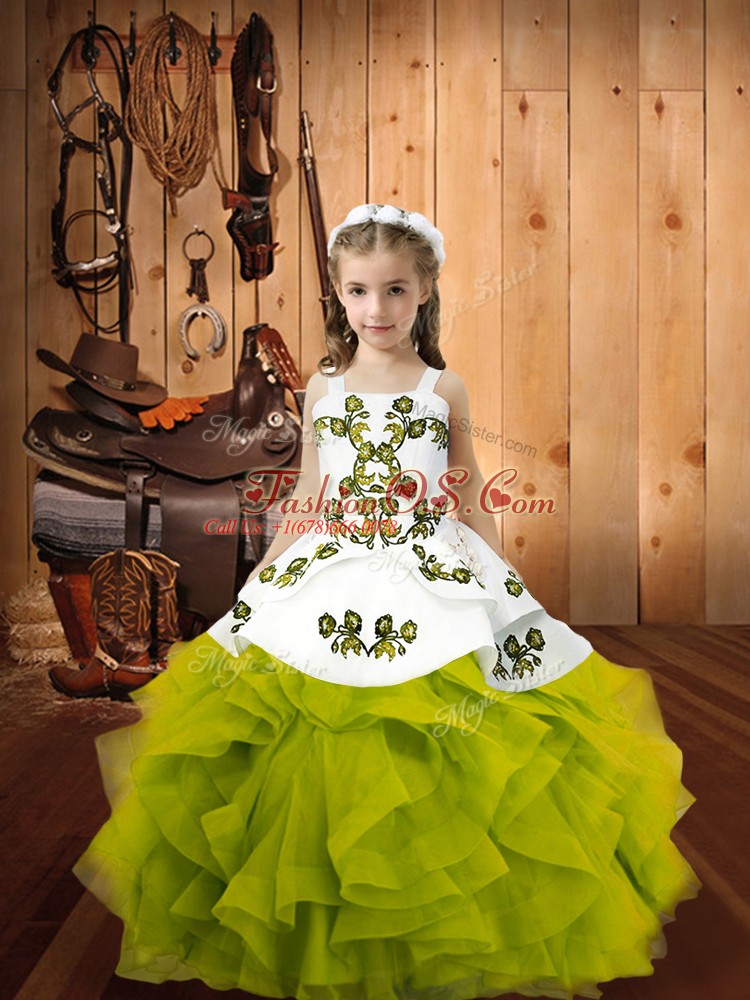 Attractive Straps Sleeveless Organza Little Girl Pageant Gowns Embroidery and Ruffles Lace Up