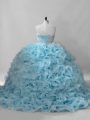 Attractive Sweetheart Sleeveless Brush Train Lace Up Quince Ball Gowns Baby Blue Fabric With Rolling Flowers