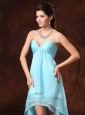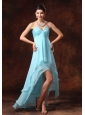 Auqa Blue High-low Empire Chiffon Sweetheart  2013 Dama Dresses for Quinceanera With Beading