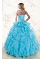 Baby Blue 2015 Prefect Sweet 16 Dresses with Beading and Ruffles