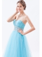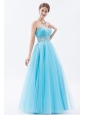 Baby Blue A-line / Princess Sweetheart Prom Dress Tulle Beading Floor-length