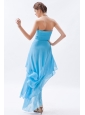Baby Blue A-line / Princess V-neck Prom Dress High-low Chiffon Beading