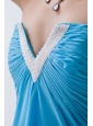 Baby Blue A-line / Princess V-neck Prom Dress High-low Chiffon Beading 130.23 This sexy high low gown features a cutout neckline trimmed in dazzling crystals. The sheer fabric is shirred to create fullness as the two delicate layers drift softly to the high-low hemline. Feel flirty and feminine in this light and breezy dress, all the way down through the asymmetrical low part of the skirt. What's more the end effect is completely feminine and completely sexy.